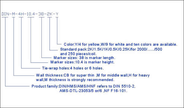 Los marcadores se pueden quitar fácilmente del portador, y se aplican a los cables y haces de cables utilizando el cable muere. impresora por transferencia térmica y WO-80500BK se recomiendan para cumplir con los requisitos de rendimiento de la impresión de SAE AS81531 y MIL-STD-202F.